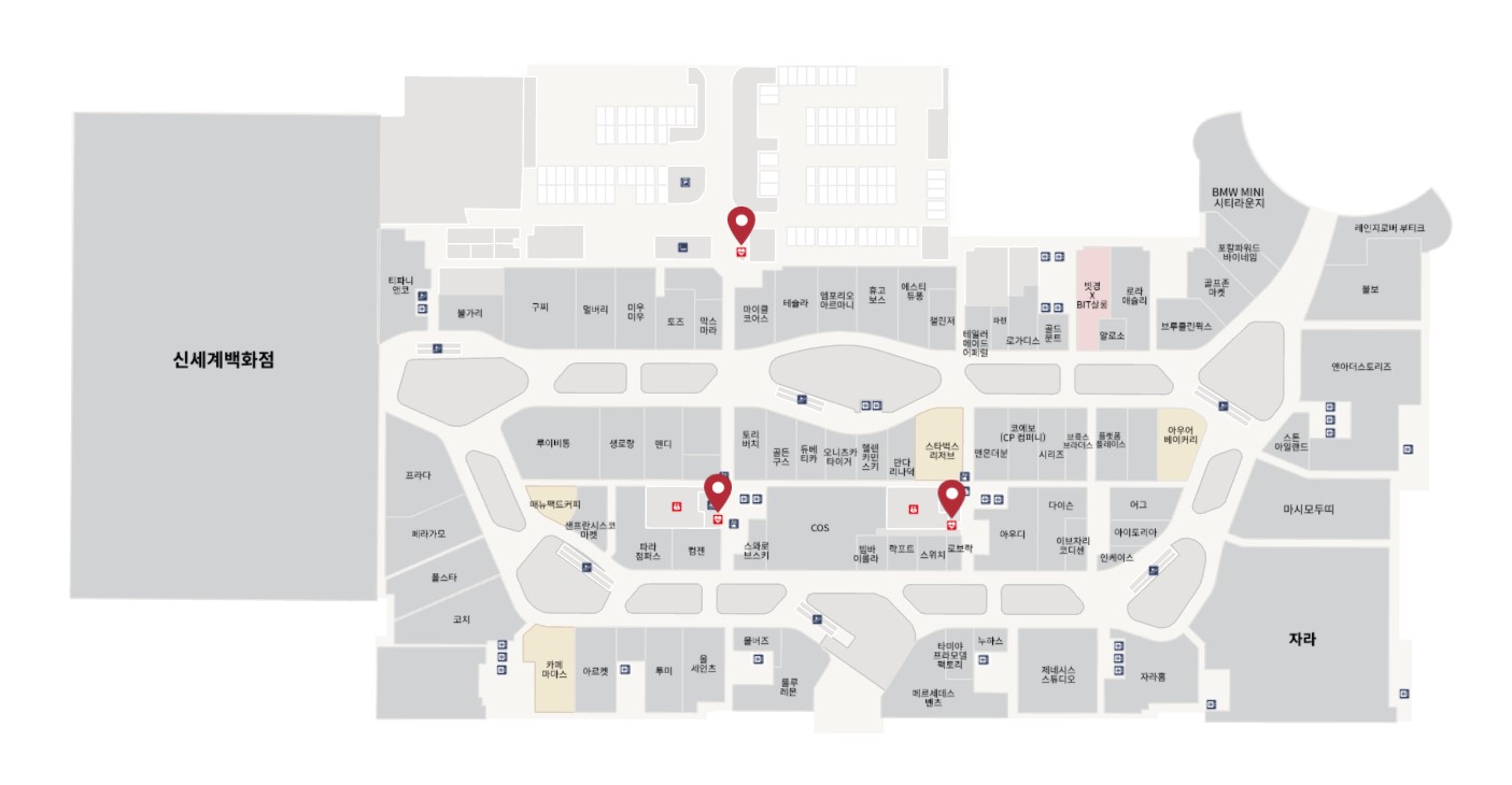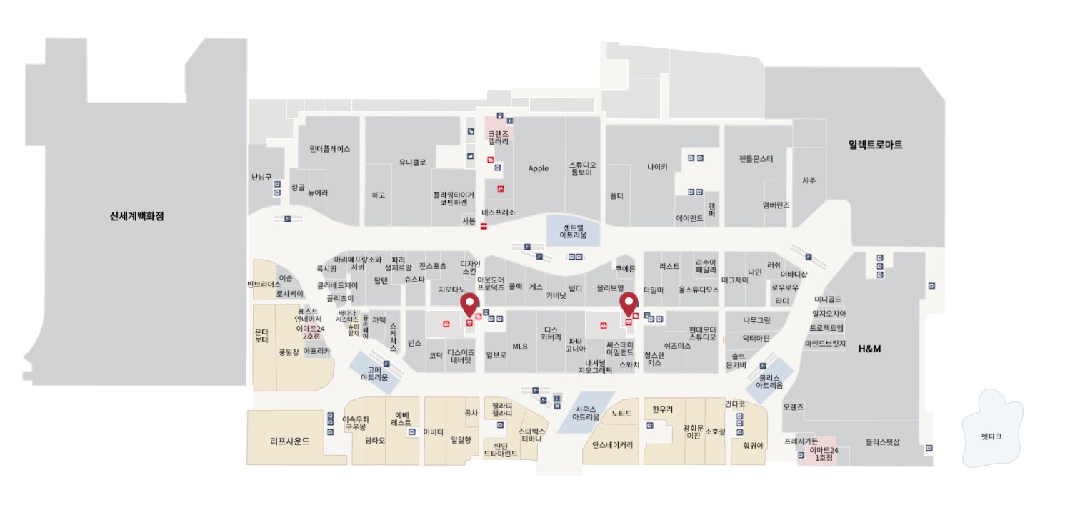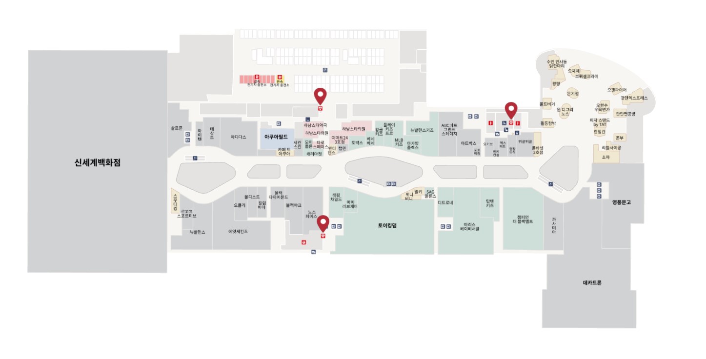 옥외 테라스 흡연 구역 쇼핑몰의 외부 테라스 공간 일부에 흡연 가능 구역이 있습니다. 이곳은 비교적 한적한 분위기에서 흡연을 즐길 수 있는 장소로, 날씨가 좋을 때 이용하기 좋습니다.